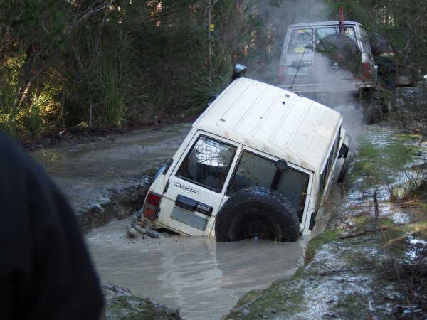 Initially I was travelling with Gav from work (seen above stuck in the puddle) in his new-to-him GU patrol. He bought this as a toy so he doesn’t damage his main bus.