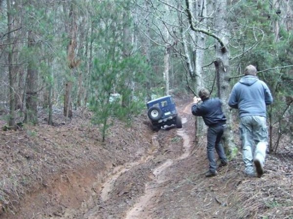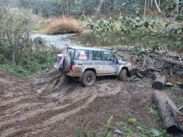 Even the mighty cruiser from North West Offroad got stuck here - bogged on a log at the bottom of a very slippery bank.