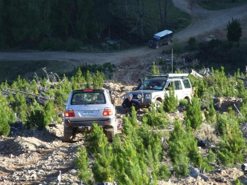 The Disco had a winch, but was still at the bottom of the hill, so decided to try and find the long way around to come and assist from the top.