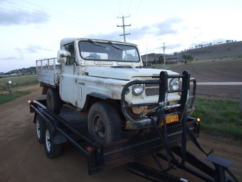 The ute was on a trailer which was being towed by a Commodore wagon, and the wagon had it’s bonnet up and a less than pleased looking owner staring at the engine.